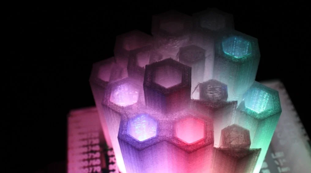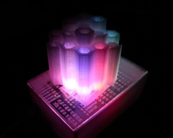Arduino, RBG LED lights, sheet acrylic, PLA Filament.