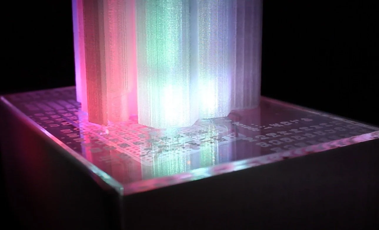 Inspired by Borges' conception of an infinite Library said to contain every possible combination of characters known to humankind, B4B3L is a light sculpture that slowly toggles through every RBG value between (0,0,0) and (255,255,255)--theoretically displaying every color combination possible using simple LED lights.